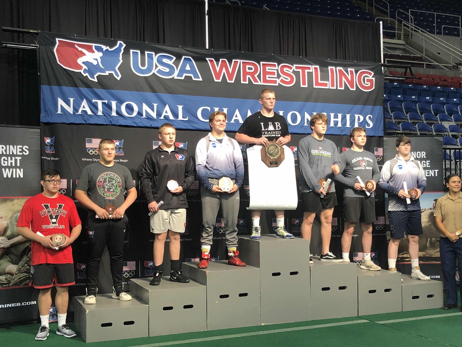 Today is the medal round. Nathan took 7th in the nation at 220 lbs.